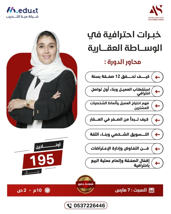 خبرة احترافية في الوساطة العقارية | أسماء العليان القابضة